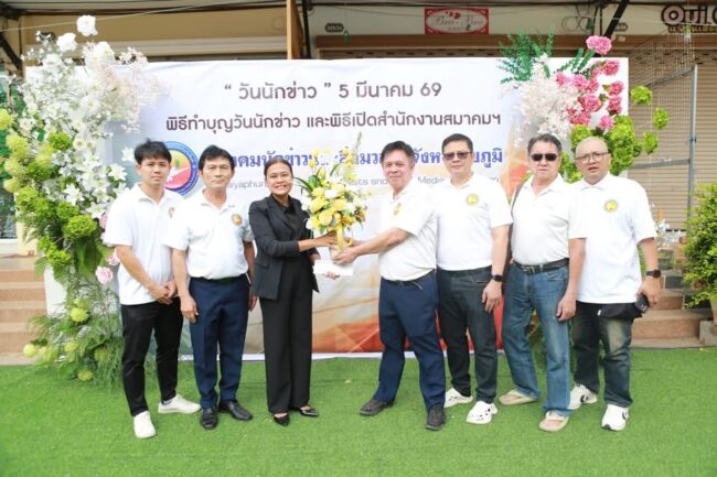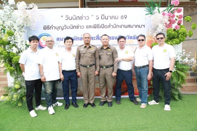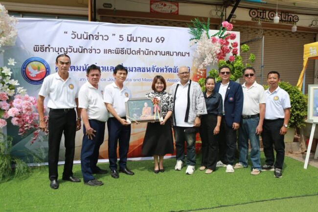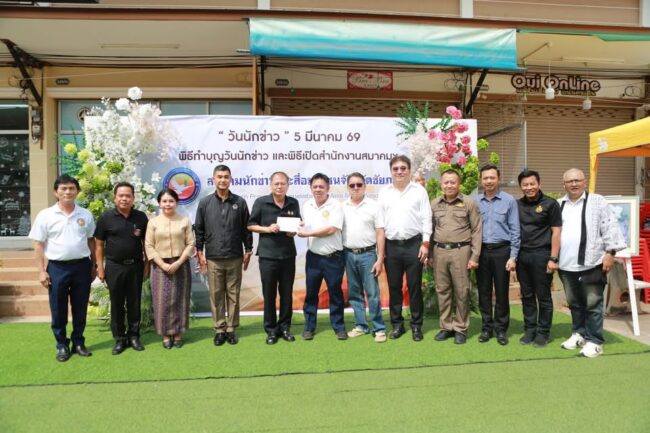 ชัยภูมิ – เมื่อวันที่ 5 มีนาคม 2569 สมาคมนักข่าวและสื่อมวลชนจังหวัดชัยภูมิ จัดกิจกรรมเนื่องใน “วันนักข่าว” โดยประกอบพิธีทำบุญเลี้ยงพระ เพื่ออุทิศส่วนกุศลให้แก่นักข่าวอาวุโสที่ล่วงลับไปแล้ว พร้อมเปิดสำนักงานสมาคมแห่งใหม่อย่างเป็นทางการ ท่ามกลางบรรยากาศที่อบอุ่นและเป็นกันเองของพี่น้องสื่อมวลชนในพื้นที่