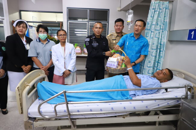 ที่ โรงพยาบาลนราธิวาสราชนครินทร์ อำเภอเมืองนราธิวาส ว่าที่ร้อยตรี ตระกูล โทธรรม ผู้ว่าราชการจังหวัดนราธิวาส เดินทางไปมอบกระเช้าเยี่ยมให้กำลังใจ เจ้าหน้าที่ทหารพราน สังกัด ฉก.ทพ.4805 จำนวน 7 ราย ดังนี้