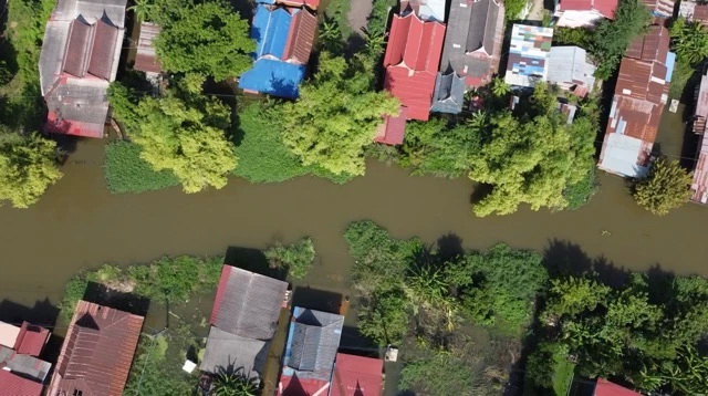 มวลน้ำเหนือไหลสมทบเจ้าพระยาหนุนสูง ท่วมบ้านเรือน-ร้านอาหาร ริมแม่น้ำที่ปทุมธานี