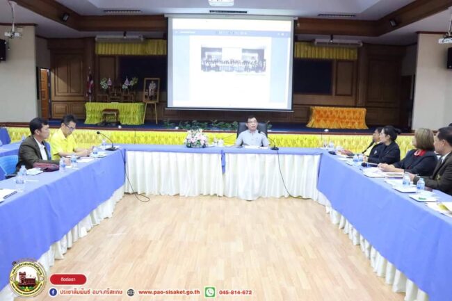 เมื่อวันพฤหัสบดีที่ ๓ ตุลาคม ๒๕๖๗ เวลา ๐๙.๓๐ น. ณ ห้องประชุมศูนย์แสดงและจำหน่ายสินค้าหนึ่งตำบลหนึ่งผลิตภัณฑ์ (OTOP) ชั้น ๒ องค์การบริหารส่วนจังหวัดศรีสะเกษ นายวิชิต_ไตรสรณกุล นายกองค์การบริหารส่วนจังหวัดศรีสะเกษ มอบหมายให้ นายมานะพันธ์ อังคสกุลเกียรติ รองนายกองค์การบริหารส่วนจังหวัดศรีสะเกษ เป็นประธานการประชุมผู้บริหารสถานศึกษา สังกัดองค์การบริหารส่วนจังหวัดศรีสะเกษ ครั้งที่ ๑๐/๒๕๖๗ โดยมี นายสวัสดิ์ ฤทธิสิงห์ รองปลัดองค์การบริหารส่วนจังหวัดศรีสะเกษ นักบริหารท้องถิ่นระดับสูง รักษาราชการแทนปลัดองค์การบริหารส่วนจังหวัดศรีสะเกษ หัวหน้าส่วนราชการ ผู้บริหารสถานศึกษาโรงเรียนสังกัดองค์การบริหารส่วนจังหวัดศรีสะเกษ ร่วมการประชุมในครั้งนี้