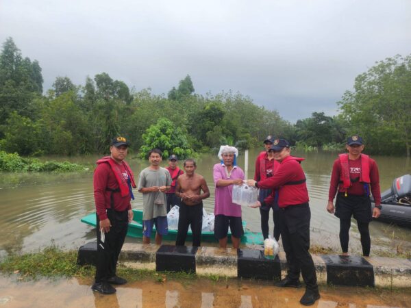 นราธิวาส–ไม่นิ่งนอนใจ ตำรวจน้ำรุดช่วยเหลือชาวบ้านที่ถนนตัดขาดพร้อมมอบ อาหาร น้ำ และ ยาเวชภัณฑ์ ที่ประสบอุทกภัยนราธิวาส