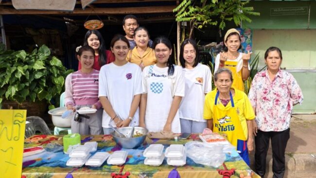 ร้านผัดไทยหน้าวัด เทศบาลตำบลวัฒนานคร อ.วัฒนานคร จ.สระแก้ว แจกข้าวกล่องฟรี เนื่องในวันพ่อแห่งชาติ