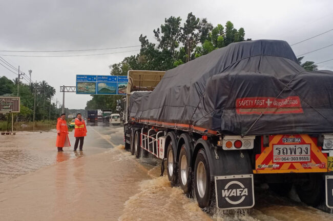 สรุปสถานการณ์น้ำท่วมไหลหลากผ่านถนนสายเอเซีย41 ตั้งแต่แยกวังตะกอ อ.หลังสวน จ.ชุมพร น้ำลดรถทุกชนิดผ่านได้ มาถึงสี่แยกปฐมพรมุ่งหน้าขึ้นเหนือวิ่งตรงจากสุราษฎร์ธานีทุ่งหน้าขึ้นกทม.ไม่ต้องอ้อมเข้าจังหวัดระนองซึ่งต้องอ้อมเกือบ 200 กม.