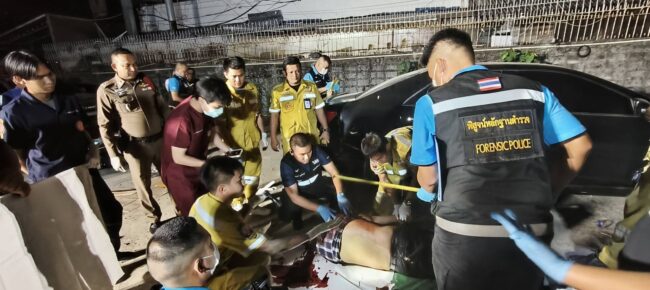 ที่เกิดเหตุ เป็นลานจอดรถข้างร้านอาหาร พบรถยนตร์ โตโยต้า แคมรี่สีดำ ทะเบียน 7 กก 9997 กรุงเทพมหานคร ตรวจสอบภายในรถ พบศพนายนพินทร์ ไชยทิพย์ อายุ 47 ปี เป็นข้าราชการในสังกัด กทม. เสียชีวิตในลักษณะนั่ง อยู่ที่เบาะหลังฝั่งขวา สวมเสื้อเชิดแขนสั้นลายสก็อต กางเกงขายาวสีกรมท่า มีบาดแผลถูกยิงด้วยอาวุธปืนเข้าที่ขมับด้านขวา ทะลุออกด้านซ้าย พบปืนกึ่งอัตโนมัติ Sig P365 ขนาด 9 มม. ตกอยู่บริเวณหว่างขาของผู้ตาย นอกจากนี้ยังพบจดหมายเขียนด้วยลายมือ พร้อมลงชื่อของผู้ตาย โดยระบุข้อความสั่งลาถึงญาติ แฟนสาว และลูก