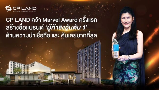 บริษัท ซี.พี.แลนด์ จำกัด (มหาชน) หรือ CP LAND ผู้นำด้านการพัฒนาอสังหาริมทรัพย์ของประเทศไทย คว้ารางวัล ‘Marvel Award’ จากเวทีงานสัมมนา TERRAHINT Brand Series 2024 จัดโดย TERRA BKK รางวัลนี้มอบให้แก่บริษัทที่มีภาพลักษณ์โดดเด่นในฐานะแบรนด์ผู้ท้าชิง ซึ่งสามารถเทียบเคียงแบรนด์เจ้าตลาด โดย CP LAND ได้รับคะแนน Powerful Score Matrix สูงสุดในทุกด้าน ด้วยคะแนนรวม 54% (สูงกว่าค่าเฉลี่ยที่ 42%) โดยเฉพาะในกลุ่มต่างจังหวัดและหัวเมืองใหญ่ ที่องค์กรได้รับการโหวตให้เป็น “แบรนด์ที่น่าเชื่อถือ” และ “แบรนด์ที่คุ้นเคย” มากที่สุดในกลุ่มแบรนด์ผู้ท้าชิง