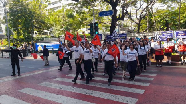 ด้าน นางเบญจมาภรณ์ กล่าวว่า สสส. และมูลนิธิไทยโรดส์ สำรวจพฤติกรรมการหยุดรถบริเวณทางม้าลาย 12 จุดใน กทม. ปี 2565 พบว่า หยุดรถ ลดความเร็วบริเวณทางม้าลาย 11 เปอร์เซ็นต์ ใช้ความเร็วบนทางม้าลายเกิน 30 กิโลเมตรต่อชั่วโมง มากถึง 79 เปอร์เซ็นต์ ก่อนถึงทางม้าลาย เป็นรถจักรยานยนต์ถึง 90 เปอร์เซ็นต์ ซึ่ง “ความเร็ว” เป็นปัจจัยสำคัญของการเสียชีวิตจากอุบัติเหตุทางถนนถึง 70 เปอร์เซ็นต์ องค์การอนามัยโลกกำหนดว่าการใช้ความเร็ว 30 กิโลเมตรต่อชั่วโมง ในพื้นที่ชุมชนจะสามารถลดอัตราการเสียชีวิตจากอุบัติเหตุได้ถึง 90 เปอร์เซ็นต์