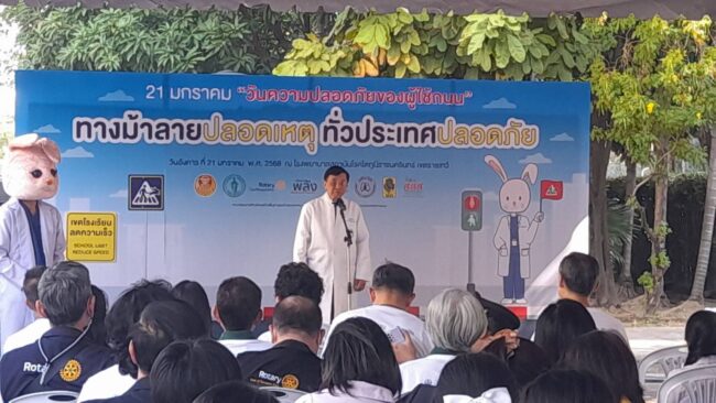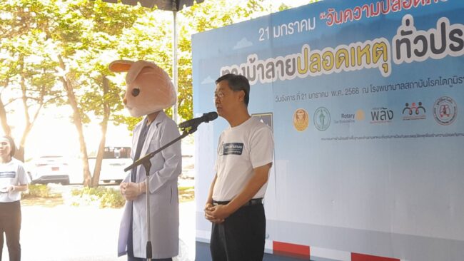 เมื่อวันที่ 21 ม.ค. 68 นายสุรชัย เลี้ยงบุญเลิศชัย ประธานอนุกรรมการด้านโครงสร้างพื้นฐานและด้านยานพาหนะเกี่ยวกับการป้องกันและลดอุบัติเหตุเพื่อสร้างความปลอดภัยทางถนน พร้อมด้วย นางเบญจมาภรณ์ ลิมปิษเฐียร รองผู้จัดการกองทุนสนับสนุนการสร้างเสริมสุขภาพ (สสส.) เครือข่ายพลังผู้สูญเสียจากอุบัติเหตุทางถนน มูลนิธิเมาไม่ขับ และภาคีเครือข่ายร่วมกันจัดกิจกรรม 21 มกราคม “วันความปลอดภัยของผู้ใช้ถนน” ทางม้าลายปลอดเหตุ ทั่วประเทศปลอดภัย ณ โรงพยาบาลสถาบันโรคไตภูมิราชนครินทร์