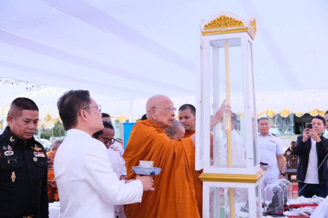 สำหรับ พิธีดังกล่าว นายอังกูร ศีลาเทวากูล ผู้ว่าราชการจังหวัดกระบี่ และ พลโท ไพศาล หนูสังข์ แม่ทัพภาคที่ 4 เป็นประธานฝ่ายฆราวาส โดยมี พลเรือตรี ปรีชา รัตนสำเนียง รองผู้บัญชาการกองทัพเรือภาคที่ 2 พล.ต.ต.ศรัญญู ชำนาญราช รอง ผบช.ภ.8 นาวาเอก สุรการ สังข์รุ่ง รองผู้บังคับการกรมทหารราบที่ 2 กองพลนาวิกโยธิน พ.ต.อ.ชัยเกียรติ วิริยสถิตย์กุล รอง ผบก.ฯ รรท. ผบก. ภ.จว.กระบี่