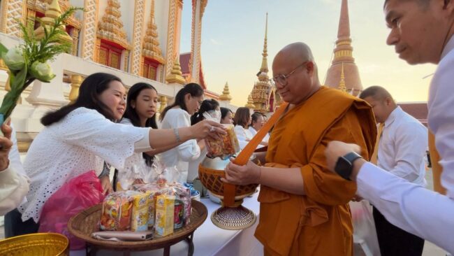 พร้อมใจกันสวมใส่ชุดขาวพร้อมร่วมกันนำอาหาร เครื่องดื่ม ปัจจัย ไทยทานตักบาตรพระสงฆ์จำนวน 59 รูป ข้างพระอุโบสถของวัด เพื่อสร้างความเป็นสิริมงคล รับศีลรับพรเนื่องในวันพระใหญ่ วันมาฆบูชาในปีนี้ หลังจากพิธีตักบาตรแล้วเสร็จ ทางวัดธาตุ พระอารามหลวง ยังได้จัดพิธีเวียนเทียนรอบพระอุโบสถเพื่อความเป็นสิริมงคลแก่ตนเองและครอบครัวเนื่องในกิจกรรมวันมาฆบูชา ปี 2568 และในเย็นวันนี้ทางวัดยังได้จัดเตรียมสถานที่เพื่อประกอบพิธีกิจกรรมเวียนเทียนจะจัดขึ้นในเวลา 19.00 น. รอบพระอุโบสถวัดธาตุ พระอารามหลวงอีกด้วย