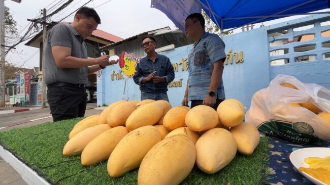 มะม่วงน้ำดอกไม้สีทองต้นฤดูออกผลผลิตแล้ว คนขอนแก่นแห่ซื้อแน่นหน้สำนักพาณิชย์ ในราคาเริ่มต้น กก.ละ 35 – 50 บาท  “ศารุมภ์”เผย เร่งขยายตลาดรองรับผลผลิตประจำฤดูกาล ที่ทยอยออกตั้งแต่เดือน มี.ค.-เม.ย.2568