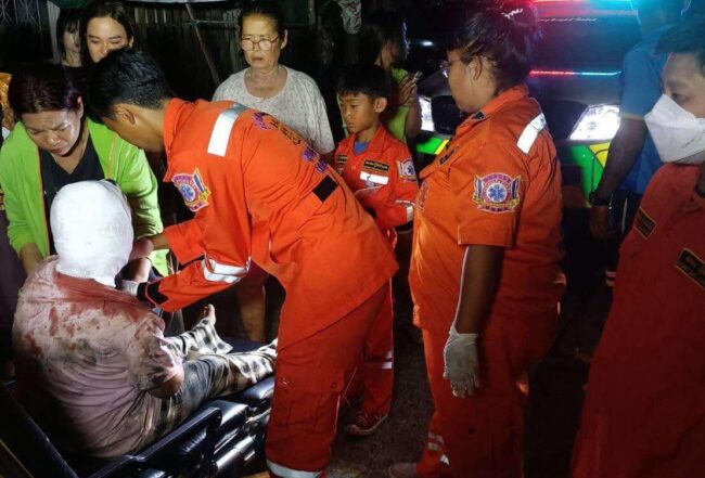นนทบุรี-สยองพิตบูลหลุด ลากเด็ก 6 ขวบจากเตียงขย้ำคอ กัดกระชากหนังหัวเห็นกระโหลก อาการสาหัส ชาวบ้านคว้าครกตีหัวหมาช่วยเด็ก กู้ชีพเร่งส่งห้องไอซียู รพ.ปากเกร็ด
