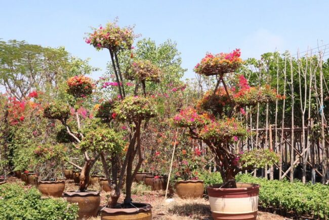 และสวยงามกว่าที่อื่นอีกทั้งต้นเฟื่องฟ้ายังสามารถดัดให้เป็นรูปร่างต่างๆ ได้มากมายทั้งสัตว์ป่า ช้าง นกยูง และมังกร หรือเป็นรูปทรงพุ่มได้หลากหลายรูปแบบ ทำให้ต้นเฟื่องฟ้าของอำเภอหนองบุญมากเป็นที่นิยมของตลาดทั้งในประเทศ และต่างประเทศ อาทิ ดูไบ การ์ตา ซาอุดีอาระเบีย จอร์แดน บาร์เรน จีน ฮ่องกง มาเลเซีย บรูไน สิงคโปร์ และไต้หวัน โดยลูกค้าส่วนใหญ่นิยมนำต้นเฟื่องฟ้าไปตกแต่งสถานที่สวนหย่อม