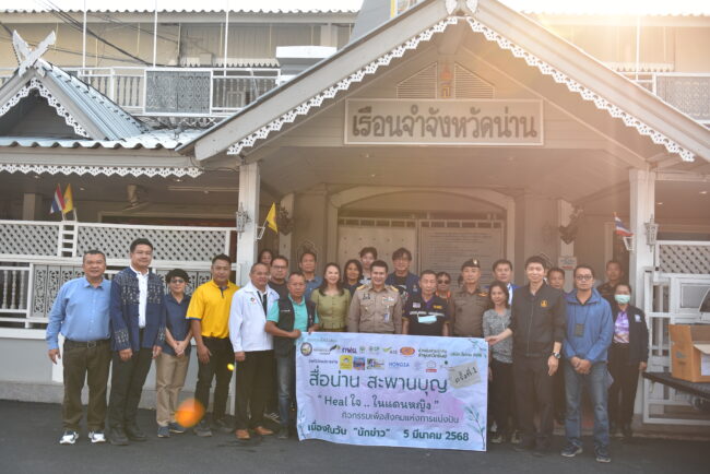 วันนี้ 5 มีนาคม 2568  นายชัยนรงค์  วงศ์ใหญ่ ผู้ว่าราชการจังหวัดน่าน ได้ร่วมกิจกรรม “สื่อน่าน สะพานบุญ” ครั้งที่ 1 “Heal ใจ  ในแดนหญิง”  ที่จัดขึ้นโดยสื่อมวลชนจังหวัดน่าน เนื่องในโอกาสวันนักข่าวแห่งชาติ  เพื่อสะท้อนให้เห็นถึงพลังของสื่อมวลชนที่ไม่เพียงแต่ทำหน้าที่สื่อสารข่าวสารอย่างเที่ยงตรง แต่ยังมีบทบาทสำคัญในการสร้างสังคมแห่งการแบ่งปัน ช่วยเหลือ และส่งต่อกำลังใจให้กับผู้ที่ต้องการโอกาส โดยเฉพาะผู้ต้องขังหญิง ซึ่งอาจกำลังเผชิญกับความท้าทายทางจิตใจและชีวิต   ณ เรือนจำจังหวัดน่าน   โดยมี นายสมยศ โยธินกิจโกศล ผู้บัญชาการเรือนจำจังหวัดน่านให้การต้อนรับ  พร้อมด้วย พ.ต.อ.ประจัญ ปัญญาแก้ว รองผู้บังคับการตำรวจภูธรจังหวัดน่าน และ นางกนกวรรณ เต็งไตรรัตน์ ผู้พิพากษาสมทบศาลเยาวชนจังหวัดน่าน  และ นายกัมปนาท พอจิต ผู้ช่วยประชาสัมพันธ์จังหวัดน่าน เข้าร่วมกิจกรรม