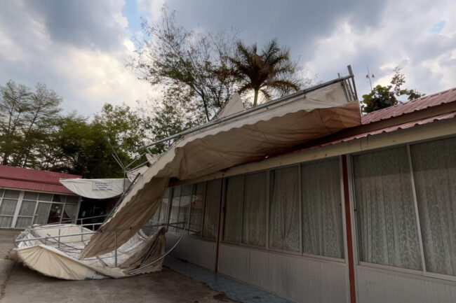 วานนี้ ( 12 มี.ค.2568 ) ผู้สื่อข่าวรายงานว่าได้เกิดพายุหมุนพัดเข้ามาภายในวัดป่าแสงอรุณ ต.พระลับ อ.เมือง จ.ขอนแก่น อย่างรวดเร็วโดยแรงลมได้พัดเต๊นท์ที่วัดได้ติดตั้งไว้สำหรับการใช้งานภายในวัดลอยปลิวขึ้นไปติดค้างบนศาลากุฎิให้พระลูกวัด และญาติธรรมได้ประสานงานไปยังเทศบาลตำบลพระลับ และนายนิทัศน์ บุญพร้อม ผญบ.ม.9 เพื่อประสานขอรถกระเช้าและกำลังเจ้าหน้าที่มาเร่งทำการจัดเก็บเต๊นท์จำนวน 4 หลังที่ลอยขึ้นไปติดค้างบนหลังคากุฎิพระ เพื่อป้องกันไม่ให้ปลิวลอยไปไกลกว่านี้ โดยเฉพาะสายไฟแรงสูงที่อยู่ห่างจากวัดประมาณ 500 เมตร