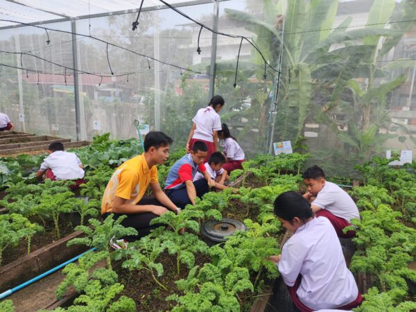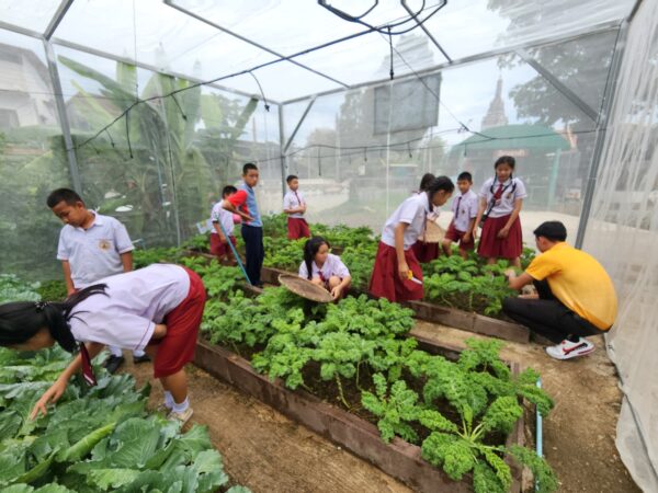 นายอนุวัฒน์ เขื่อนดิน ครูผู้สอนวิชาเกษตรอินทรีย์ เล่าว่า การปลูกผักในโรงเรียน เพื่อเป็นอาหารกลางวัน ไม่เพียงแต่ช่วยให้นักเรียนได้เรียนรู้การทำเกษตรกรรมอย่างถูกต้อง แต่ยังช่วยเสริมให้นักเรียนรู้จักความรับผิดชอบ มีวินัย รู้จักการประหยัด และนำสิ่งที่ตนเองมีอยู่มาใช้ให้เกิดประโยชน์ เช่น เมื่อมีพื้นที่ว่างก็ทำให้พื้นที่นั้นเกิดประโยชน์ด้วยการปลูกผัก เลี้ยงปลาหรือถ้าไม่มีพื้นที่มากพอก็ลองหาวิธีอื่น อย่างการปลูกผักแบบใช้น้ำก็เป็นอีกวิธีหนึ่ง นอกจากจะได้ผักที่ปลอดสารพิษที่เราปลูกเองกับมือแล้ว ยังได้เรียนรู้การทำการเกษตรที่หลากหลายวิธี อีกทั้งนักเรียนยังได้ฝึกฝนกระบวนการบริหารจัดการ ตั้งแต่การดูแลแปลงผักไปจนถึงการคำนวณต้นทุนและการนำผลผลิตไปใช้ประโยชน์สูงสุด