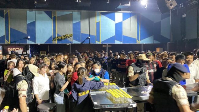 พนักงานฝ่ายปกครองเข้าสืบสวนข้อเท็จจริงพบว่ามีการกระทำผิดจริงตามข้อร้องเรียน กระทั่งเวลา 03.00 น. วันที่ 23 มี.ค. 2568 ได้เปิดปฏิบัติการจู่โจมสถานบันเทิงละเมิดกฎหมายทันที เมื่อชุดจับกุมเข้าไปถึงภายในผับ พบเป็นห้องทึบ เปิดเพลงแนวปาร์ตี้ มีแสง สี เสียง เต็มระบบ โดยจะมีดีเจผลัดเปลี่ยนกันให้บริการตลอดคืน พบนักเที่ยวจำนวน 212 คน กำลังมั่วสุมดื่มกินเครื่องดื่มแอลกอฮอล์ เต้นตามจังหวะเสียงดนตรีอย่างเมามัน ทั้งยังสูบบุหรี่พ่นควันคละคลุ้ง พนักงานฝ่ายปกครองจึงสั่งให้ปิดเพลงและเปิดไฟให้แสงสว่าง ภายในผับได้เกิดความโกลาหล นักเที่ยวหลายคนต่างโยนยาเสพติดทิ้งออกจากตัว และพยายามหลบหนีออกทางประตูหน้าร้านและหลังร้าน แต่ชุดจับกุมได้ปิดล้อมประตูไว้ทุกด้าน จึงทำให้นักเที่ยวไม่สามารถหนีออกไปได้ พนักงานฝ่ายปกครองได้ประกาศให้ทุกคนอยู่ในความสงบ