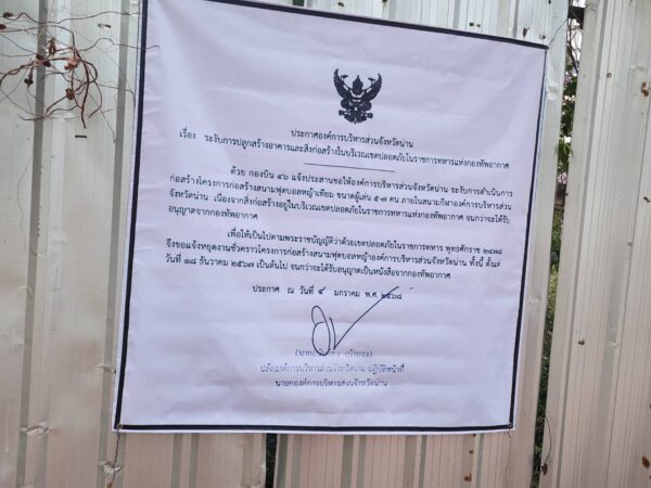 นายรุ่งโรจน์ ขจรพงศ์กีรติ นายกองค์การบริหารส่วนตำบลผาสิงห์ เปิดเผยว่า ภายหลังจากได้รับหนังสือแจ้งจากทางกองบิน 46 กองทัพอากาศ ก็ได้มีประกาศแจ้งไปยังประชาชนในแนวเขตปลอดภัยในราชการทหารทันที ผ่านทางผู้นำชุมชน โดยหลังจากนี้ หากประชาชนในแนวเขตฯเส้นสีแดง ต้องดำเนินการเรื่องสิ่งปลูกสร้าง และรายละเอียดตาม พรบ.ว่าด้วยเขตปลอดภัยในราชการทหาร พ.ศ.2478 ข้อ 5 ก็ต้องให้ดำเนินการขออนุญาตเป็นหนังสือจากทางกระทรวงกลาโหมก่อน แล้วจึงขออนุญาตจากทาง อบต.ผาสิงห์ เพื่อที่จะดำเนินการสิ่งปลูกสร้างได้ตามขั้นตอน พระราชบัญญัติควบคุมอาคาร พ.ศ.2522 ซึ่งหากไม่ได้รับอนุญาตจากทางกระทรวงกลาโหม ทาง อบต.ผาสิงห์ ก็ไม่สามารถอนุญาตได้