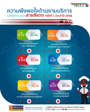สายสีแดง เผยผลสำรวจความพึงพอใจครึ่งปีแรก ผู้โดยสารเชื่อมั่นคุณภาพการบริการและมาตรฐานด้านความปลอดภัย