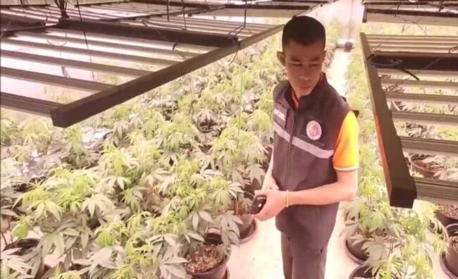 เมื่อไปถึงพบโกดังดังกล่าว พบว่าภายในติดแอร์กว่า 30 ตัว ด้านหลังพบไร่กัญชา และมีกัญชาตากแห้งจำนวนหนึ่ง โดยประตูโกดังเปิดอยู่ เจ้าหน้าที่ได้เรียกผู้ดูแล แต่ไม่มีใครออกมา พบเพียงแรงงานชาวเวียดนาม 3 คน อยู่ด้านใน นั่งเฝ้าต้นกัญชาในห้องแอร์ เจ้าหน้าที่จึงขอตรวจใบอนุญาตทำงาน ปรากฏว่าไม่มีใบนำแสดง จึงจับดำเนินคดี
