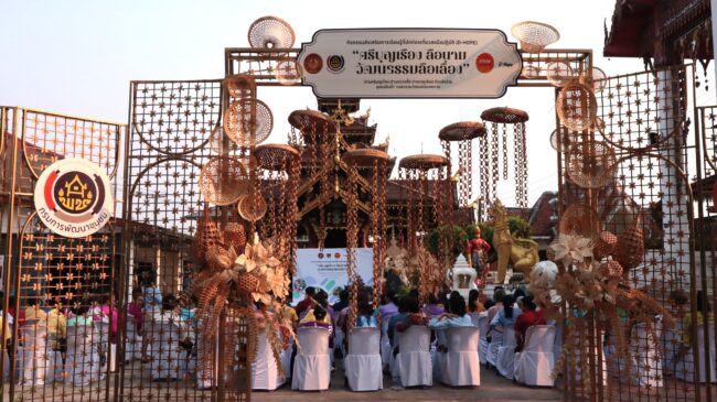 วันที่ 3 เมษายน 2568 เวลา 17.00 น. ที่วัดบ้านศรีบุญเรือง ตำบลม่วงตึ๊ด อำเภอภูเพียง จังหวัดน่าน นางวิไลวรรณ บุดาสา รองผู้ว่าราชการจังหวัดน่าน เป็นประธานเปิดกิจกรรมส่งเสริมการเรียนรู้ที่นักท่องเที่ยวลงมือปฏิบัติ (D-HOPE) “ศรีบุญเรืองลือนาม วัฒนธรรมลือเลื่อง” โครงการส่งเสริมการท่องเที่ยวโดยชุมชน โดยมีนายพงษ์ศิลป์ ผาลา นายอำเภอภูเพียง กล่าวรายงาน พร้อมด้วยนายชัยณรงค์ รักษารัตน์ พัฒนาการจังหวัดน่าน หัวหน้าส่วนราชการ ผู้อำนวยการกลุ่มงาน ผู้นำชุมชน เจ้าหน้าที่พัฒนาชุมชน และประชาชน ร่วมกิจกรรม