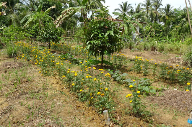 นอกจากดาวเรือง พื้นที่สวนยังมีการปลูกพืชหลายชนิด เช่น พริก, ส้มโอ, ชมพู่ โดยการปลูกพืชแบบผสมผสาน  ช่วยให้แมลงศัตรูพืชลดลงตามธรรมชาติ   มีการใช้ขวดน้ำ  แขวนตามแปลงเพื่อไล่แมลงโดยไม่ต้องพึ่งพาสารเคมี  พื้นที่สวนยังแบ่งออกเป็นแปลงไผ่ซางนวล   ซึ่งไม่ได้ขายลำต้นแต่ขายหน่อไผ่ปีละ 10,000-20,000 บาท