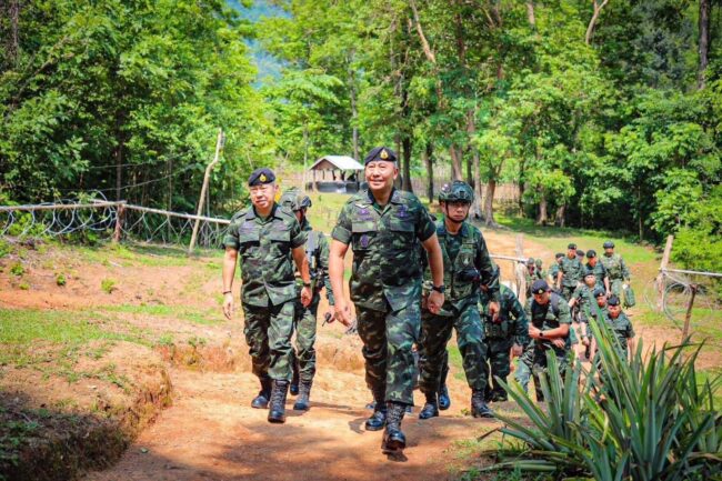 ผู้บัญชาการทหารบกและคณะ เดินทางโดยเฮลิคอปเตอร์ไปยังฐานปฏิบัติการต้นแม่น้ำสุริยะ อ.สังขละบุรี จ.กาญจนบุรี ของกองร้อยทหารราบที่ 1422 หน่วยเฉพาะกิจราชมนู ซึ่งเป็นฐานปฏิบัติการตามแนวชายแดนไทย – เมียนมา ในพื้นที่รอยต่อของกองกำลังนเรศวรกับกองกำลังสุรสีห์ ตั้งอยู่ในพื้นที่ห่างไกล ยากต่อการเข้าถึง ซึ่งผู้บัญชาการทหารบกได้ตรวจเยี่ยมให้กำลังใจกำลังพลในฐานปฏิบัติการพร้อมติดตามสถานการณ์ และการปฏิบัติงานของเจ้าหน้าที่ทหารในการลาดตระเวนสกัดกั้นการกระทำผิดตามแนวชายแดน พร้อมทั้งมอบสิ่งของบำรุงขวัญให้กับกำลังพล