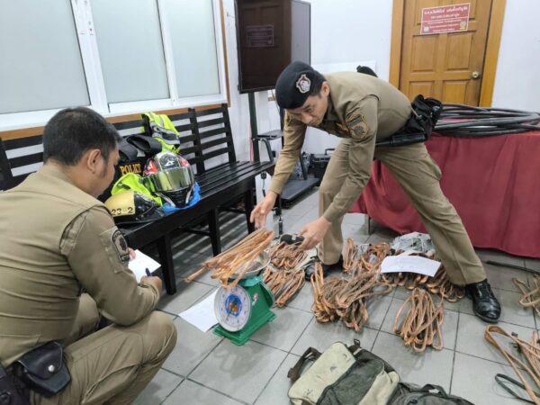 4.สายไฟกราวทองแดงที่ปอกแล้ว จำนวน 45 ม้วน น้ำหนักรวมประมาณ 74.5 กิโลกรัม