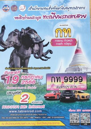 ขนส่งสมุทรปราการ เปิดประมูลเลขป้ายทะเบียนสวย รวม 301 หมายเลข