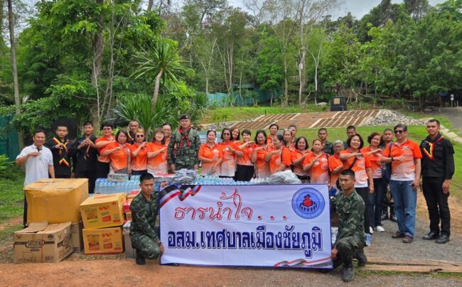 นางพิมพ์ใจ วัชรมณเฑียร ประธานอาสาสมัครสาธารณสุข (อสม.) เทศบาลเมืองชัยภูมิ พร้อมด้วยสมาชิก อสม. จากทั้ง 27 ชุมชนในเขตเทศบาลเมืองชัยภูมิ และพี่น้องประชาชนจิตอาสา ได้ร่วมกันจัดกิจกรรม “ธารน้ำใจจากชาวชัยภูมิ สู่แนวชายแดน” โดยนำสิ่งของอุปโภคบริโภค อาหารแห้ง ยาสามัญประจำบ้าน และของใช้จำเป็น เดินทางไปมอบให้แก่เจ้าหน้าที่ทหารประจำการในพื้นที่ชายแดน ณ ฐานปฏิบัติการบริเวณปราสาทตาควาย อำเภอพนมดงรัก และปราสาทตาเมือนธม จังหวัดสุรินทร์