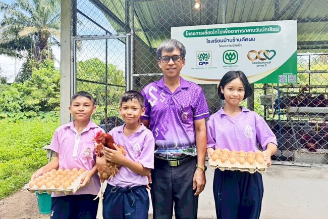 โครงการ “เลี้ยงไก่ไข่เพื่ออาหารกลางวั น” ของมูลนิธิเจริญโภคภัณฑ์พัฒนาชี วิตชนบทและซีพีเอฟ ได้เข้ามาเป็นส่วนหนึ่งของชีวิ ตโรงเรียน ที่มาพร้อมกับโรงเรือนไก่ใหม่ เอี่ยม แม่ไก่สาว 150 ตัว และอาหารสำหรับเลี้ยงไก่ 1 รุ่น