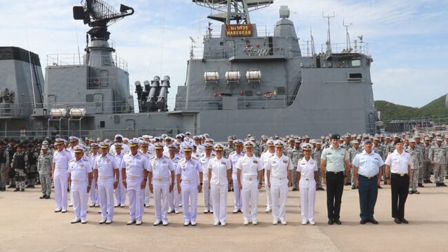 วันนี้ (7 ก.ค.68) พลเรือเอก ณัฏฐพล เดี่ยววานิช ผู้บัญชาการกองเรือยุทธการ ประธานฝ่ายไทย พร้อมด้วย พลเรือตรีหญิง เคธี่ เอฟ เชลดอล รองผู้บัญชาการกองเรือที่ 7 กองทัพเรือสหรัฐฯ ประธานร่วมฝ่ายสหรัฐฯ ร่วมเป็นประธานเปิดการฝึกผสม CARAT 2025 โดยมี กำลังพลทหารทั้ง 2 ชาติ รวม 1,000 นาย เข้าร่วม ณ ท่าเรือแหลมเทียน อ.สัตหีบ จ.ชลบุรี