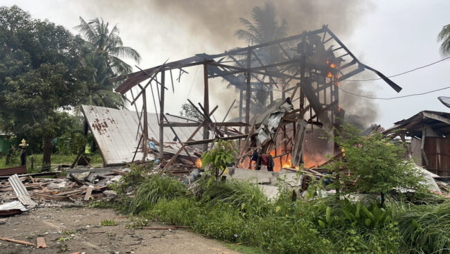 เมื่อวันที่ 27 ก.ค.68 เวลาประมาณ 05.50 น.ทหารกัมพูชา ได้ยิงกระสุนปืนใหญ่นับสิบลูก เข้ามาในพื้นที่ อ.ปราสาท จ.สุรินทร์ โดยพบว่าลูกกระสุนปืนใหญ่ มาตกระเบิดที่หมู่บ้านแห่งหนึ่งในพื้นที่ ต.บ้านพลวง อ.ปราสาท จ.สุรินทร์ ซึ่งอยู่ห่างจากแนวชายแดนประมาณ 40 กิโลเมตร โดยลูกระเบิดตกใส่ข้างบ้านของนายคูณ พรหมนัดส์ อายุ 80 กว่าปี เสียงดังสนั่นหวั่นไหว ทำให้สะเก็ดระเบิดถูกตัวบ้านไม้สองชั้นเสียหายและไฟไม้ทั้งหลัง
