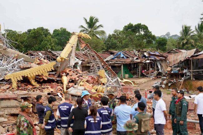 5. เมื่อวันที่ 30 กรกฎาคม 2568 เจ้าหน้าที่ฝ่ายกัมพูชาได้นำผู้ช่วยทูตทหารต่างประเทศและผู้สื่อข่าว เดินทางมายังจุดผ่อนปรนการค้าช่องอานม้า อำเภอน้ำ ยืนจังหวัดอุบลราชธานี โดยมี พันเอกบุญเสริม บุญบำรุง รองผู้บัญชาการกองกำลังสุรนารี ต้อนรับ
