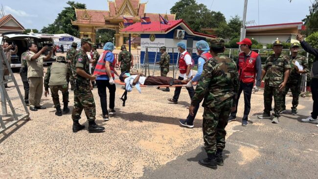เปิดภาพนาที ส่งทหารกัมพูชา 2 นาย ที่ได้บาดเจ็บ-ป่วยทางจิต กลับประเทศ โดยให้นั่งรถเข็น และพยุงตัว มอบให้กับฝั่งกัมพูชา ที่มารอรับบริเวณช่องจอม