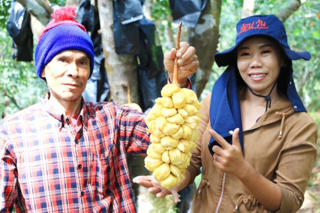 น.ส.ศุภิสรา หนูนุ้ย หรือน้องปอ พร้อมด้วยคุณพ่อ นายจรัญ หนูนุ้ย เจ้าของสวนจำปาดะทองตาปาน ในพื้นที่ ม.1 ต.เหมาะ อ.กะปง จ.พังงา ได้นำผู้สื่อข่าวไปเยี่ยมชมสวนพร้อมเก็บผลผลิตที่กำลังแก่จัด ลักษณะสวนเป็นเนินสูงพื้นที่9ไร่ ปลูกจำปาดะทองตาปานประมาณ 200 ต้น อายุกว่า30ปี มีการดูแลจัดการสวนเป็นอย่างดี ไม่ใช้ยาฆ่าแมลงจำปาดะทุกลูกจะห่อด้วยถุงพลาสติกสีดำป้องกันพวกสัตว์และแมลงมาทำลาย ทำให้คุณภาพจึงออกมาดีกว่าของทั่วๆไป และจะตัดออกมาจำหน่ายเฉพาะลูกที่แก่จัดเท่านั้น เมื่อได้ชิมจำปาดะลูกที่สุกคาต้น พบว่าเนื้อสีทอง รสชาติหอมหวาน อร่อย และมีเนื้อเยอะกว่าจำปาดะทั่วไป