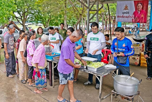 โดยมีทีมงานจิตอาสา เดินหน้าเคียงข้างทุกวิกฤติ ลงพื้นที่ศูนย์พักพิง ทั้งทำหน้าที่ส่งอาหารสดเข้ าโรงครัวต่างๆ พร้อมตั้งโรงครัวอาสาทำอาหารปรุ งสำเร็จสดใหม่ส่งถึงพี่น้ องประชาชน ให้ได้รับประทานอาหารร้อนๆ แทนกำลังใจที่ทุกคนมอบให้ ฝากไปกับมื้ออาหาร พร้อมมอบของใช้จำเป็นทั้งที่ศู นย์อพยพ และเข้าเยี่ยมให้กำลังใจที มอาสาอยู่เฝ้าพื้นที่ชุมชน