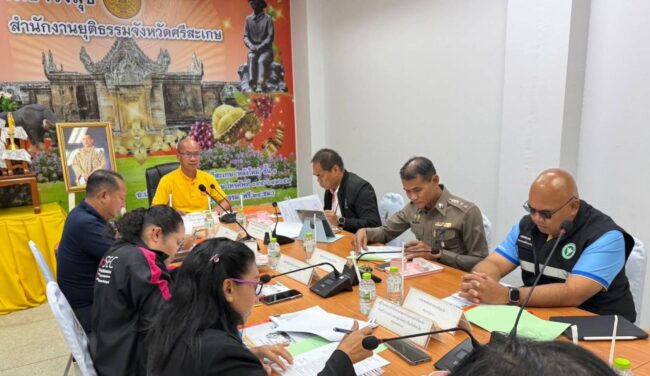 เมื่อวันจันทร์ที่ 11 สิงหาคม 2568 เวลา 13.00 น. ณ ห้องประชุมยุติธรรมธำรงสุข สำนักงานยุติธรรมจังหวัดศรีสะเกษ ชั้น 1 ศาลากลางจังหวัดศรีสะเกษ นายอนุพงศ์ สุขสมนิตย์ ผู้ว่าราชการจังหวัดศรีสะเกษ มอบหมายให้ นายสุริยา บุตรจินดา รองผู้ว่าราชการจังหวัดศรีสะเกษ เป็นประธานการประชุมคณะอนุกรรมการพิจารณาค่าตอบแทนผู้เสียหายและค่าทดแทนและค่าใช้จ่ายแก่จำเลยในคดีอาญา ประจำจังหวัดศรีสะเกษ ครั้งที่ 8/2568