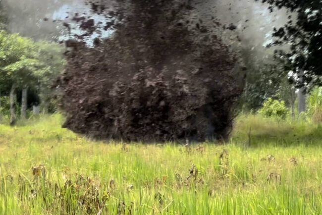 หลังจากชาวบ้านเข้าสำรวจพื้นที่ พบหลุมต้องสงสัย คาดเป็นกระสุนปืนใหญ่ถูกยิงข้ามมาจากฝั่งกัมพูชา แต่ยังไม่แตก จึงแจ้งเจ้าหน้าที่เข้ามาตรวจสอบและทำลายอย่างต่อเนื่อง เพราะหลังชาวบ้านกลับเข้าพื้นที่ได้พบหลุมต้องสงสัย จึงแจ้งผู้นำท้องถิ่นทราบเพื่อแจ้งให้ชุด EOD เข้าไปตรวจสอบและทำลาย