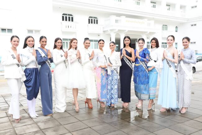 เมื่อเร็วๆนี้ ณ หอประชุมอดิศรภักดี ศาลากลางจ.ภูเก็ต บรรดาสาวงามผู้เข้าประกวดมิสยูนิเวิร์สไทยแลนด์ 2025 แต่งกายสวมชุดไทยสวยงาม เดินทางไปร่วมพิธีเจริญพระพุทธมนต์และทำบุญตักบาตรถวายพระราชกุศลสมเด็จพระนางเจ้าสิริกิติ์พระบรมราชินีนาถ พระบรมราชชนนีพันปีหลวง เนื่องในโอกาสวันเฉลิมพระชนมพรรษา 12 สิงหา 2568