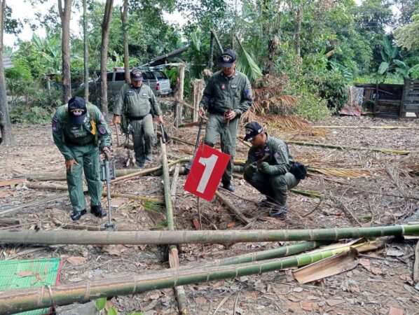 เจ้าหน้าที่ชุดเก็บกู้ระเบิด EOD ตชด.22 ตรวจพิสูจน์และทำลายลูกระเบิดที่”ทหารเขมรยิงมั่ว”..! มาตกค้างในพื้นที่ ศรีสะเกษเพื่อความปลอดภัยและคืนความสงบให้กับประชาชน