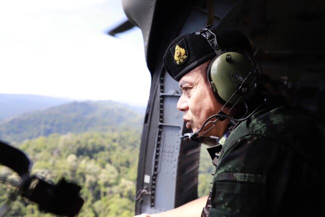 นราธิวาส – แม่ทัพภาคที่ 4 บินสำรวจแนวชายแดนป่าเขา จ.นราธิวาส หลังพบความเคลื่อนไหวขนอาวุธข้ามแดน เร่งประชุมวางแผนสกัดกั้นเข้ม