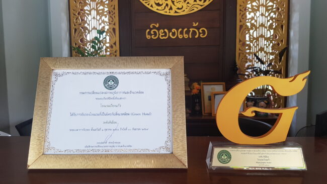 คุณมล ได้เล่าถึงจุดเริ่มต้นในการนำพา “เวียงแก้ว” เข้าสู่ กรีนโฮเทล ว่าเกิดจาก“องค์การบริหารการพัฒนาพื้นที่พิเศษเพื่อการท่องเที่ยวอย่างยั่งยืน” หรือ อพท. โดยสำนักงานพื้นที่พิเศษเพื่อการท่องเที่ยวอย่างยั่งยืนเมืองเก่าน่าน (อพท.น่าน) เชิญไปอบรมและศึกษาดูงานเกี่ยวกับเรื่องนี้ ซึ่งทำให้เห็นว่า นี่ไม่ใช่แค่เรื่องสิ่งแวดล้อม แต่เป็นการสร้าง “มาตรฐานใหม่ให้กับโรงแรมของตัวเอง” และอาจช่วยเสริมภาพลักษณ์ทางการตลาดได้ในอนาคต และพูดคุยกับพนักงานทุกคน สร้างความเข้าใจร่วมกัน ส่งทีมงานไปดูงานโรงแรมตัวอย่าง เริ่มทำเช็คลิสที่เราทำ ว่าเข้าเกณฑ์มากน้อยแค่ไหน ซึ่งผลคือ เกินกว่า 50 % เป็นสิ่งที่โรงแรมทำอยู่แล้ว เพียงแต่ไม่เคยจัดระบบหรือเก็บข้อมูลให้ชัดเจนเท่านั้น จึงเป็นจุดเริ่มต้น ซึ่งกุญแจสำคัญคือ ผู้ประกอบการมีใจอยากทำ และ ลูกน้องให้ความร่วมมือ เพราะจะต้องใส่ใจในเรื่องการเก็บสถิติต่างๆ เช่น การคัดแยกขยะ การบำบัดน้ำเสียและบ่อดักไขมัน ค่าน้ำ ค่าไฟ ซึ่งเชื่อว่า โรงแรมและที่พักทุกแห่ง ก็ต้องทำอยู่แล้ว เพียงแต่ยังไม่ได้เก็บสถิติ