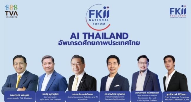 สถาบันเอฟเคไอไอไทยแลนด์ (Field for Knowledge Integration and Innovation:FKI Thailand) โดย นายอลงกรณ์ พลบุตร ประธานสถาบัน FKII Thailand และ นายชยดิฐ หุตานุวัชร์ประธานสถาบันทิวา และผู้อำนวยการสถาบัน FKII Thailand จัดงานสัมมนาFKII National Forum ในหัวข้อ “AI Thailand: อัปเกรดศักยภาพประเทศไทย” โดยเน้นย้ำถึงบทบาทของปัญญาประดิษฐ์ (AI) ในการขับเคลื่อนประเทศให้ก้าวข้ามความท้าทายทางเศรษฐกิจ สังคม และเพิ่มขีดความสามารถในการแข่งขันบนเวทีโลก จากผู้ทรงคุณวุฒิและผู้ประกอบการหลากหลายภาคส่วน