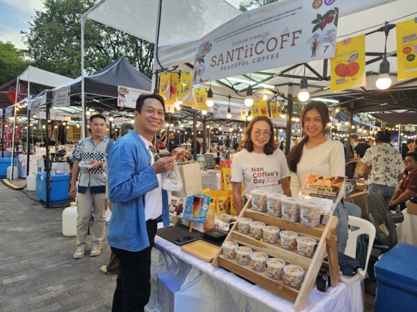 สำนักงานอุตสาหกรรมจังหวัดน่าน ขนผู้ประกอบการกาแฟน่านกว่า 24 ร้านกาแฟดังทั่วจังหวัดน่าน พร้อมด้วยเครือข่ายผู้ประกอบการ จังหวัดน่าน รวมกว่า 36 ราย โดยมีผู้ประกอบการที่ได้รับการพัฒนาและเสริมสร้างองค์ความรู้ด้านการแปรรูปกาแฟ เพื่อเพิ่มมูลค่าและเชื่อมโยงตลาด จำนวน 15 ราย นำผลิตภัณฑ์ที่ได้รับการพัฒนา ร่วมทดสอบตลาดผลิตภัณฑ์กาแฟน่าน ระหว่างวันที่ 19-21 กันยายน 2568 ณ ข่วงเมืองน่าน (ข่วงน้อย) โดยมีนายบรรจง ขุนเพชร รองผู้ว่าราชการจังหวัดน่านเป็นประธานในพิธีเปิดงาน