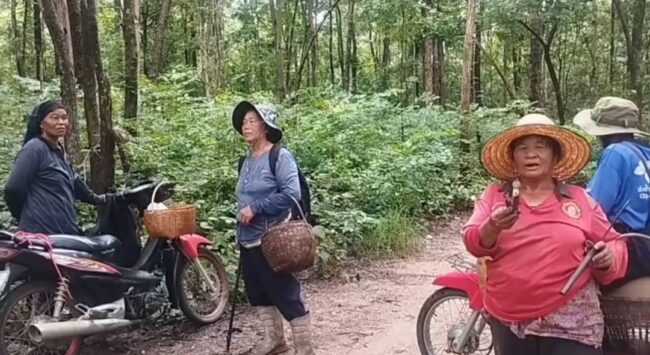 โดยชาวบ้านนั้นเดินทางมาตั้งแต่ 6 โมงเช้า และมีการห่อข้าว นำข้าวต้มมัด น้ำดื่ม มีด อุปกรณ์เข้าป่า บางคนถึงขั้นบนเจ้าที่เจ้าทางก่อนเข้าป่าหาเห็ด บางรายก็ออกจากป่ามาช่วงสายๆ ได้เห็ดออกมาคนละ4-5 โล บางคนก็ได้ 7-10 โล ไปฝากญาติบ้าง ทำเมนูน้ำเห็ด และนำไปแกงทำเมนูอื่นๆ หากเหลือก็จะนำไปขายตามท้องตลาด