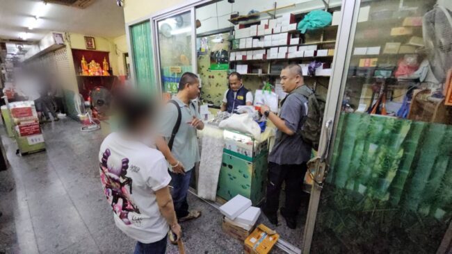 ภายใต้การอำนวยการของ พล.ต.ท.ณัฐศักดิ์ เชาวนาศัย ผบช.ก. และ พล.ต.ต.ทัศน์ภูมิ จารุปรัชญ์ ผบก.ปอศ. เจ้าหน้าที่ตำรวจ กก.1 บก.ปอศ. พร้อมด้วยตัวแทนผู้ปกป้องสิทธิทรัพย์สินทางปัญญา ได้นำหมายค้นศาลทรัพย์สินทางปัญญาและการค้าระหว่างประเทศกลาง เข้าตรวจค้นร้านค้าไม่มีชื่อในอาคารตลาดกลางกรุง ย่านสัมพันธวงศ์ จำนวน 3 จุดตรวจค้น