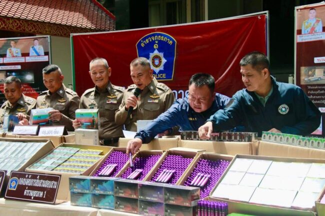 ▶️ ร่วมแถลงข่าวผลการจับกุมขบวนการลักลอบลำเลียงบุหรี่ไฟฟ้า จากพื้นที่ภาคใต้ขึ้นมากระจายในพื้นที่ภาคกลาง