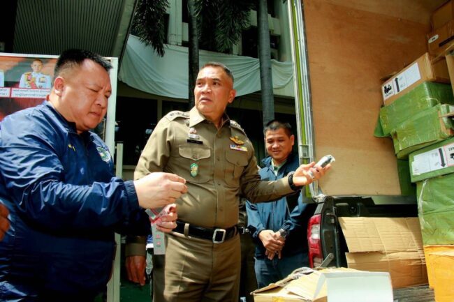 3.) #แถลงข่าวผลการจับกุม #ขบวนการลักลอบลำเลียงบุหรี่ไฟฟ้า #จากพื้นที่ภาคใต้ #กระจายในพื้นที่ภาคกลาง #ของกลางมูลค่ารวม #ยี่สิบล้านบาท