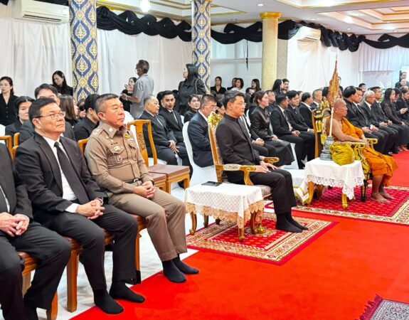 นายสยาม ศิริมงคล ผู้ว่าราชการจังหวัดสมุทรปราการ เป็นประธานในพิธีบำเพ็ญกุศลสวดพระอภิธรรม เพื่ออุทิศถวายพระราชกุศลแด่สมเด็จพระนางเจ้าสิริกิติ์ พระบรมราชินีนาถ พระบรมราชชนนีพันปีหลวง