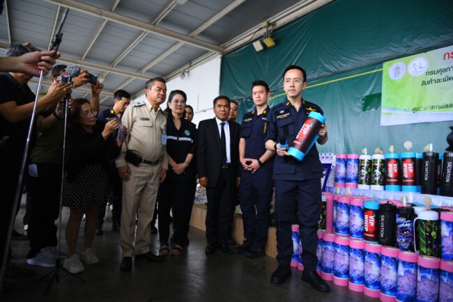 วันนี้ (3 พฤศจิกายน 2568) นายพันธ์ทอง ลอยกุลนันท์ อธิบดีกรมศุลกากร แถลงข่าวผลการปราบปรามการนำเข้าสินค้าก๊าซไนตรัสออกไซด์ (ก๊าซหัวเราะ) สินค้าละเมิดเครื่องหมายการค้าและเฮโรอีน มูลค่ารวมกว่า